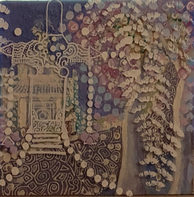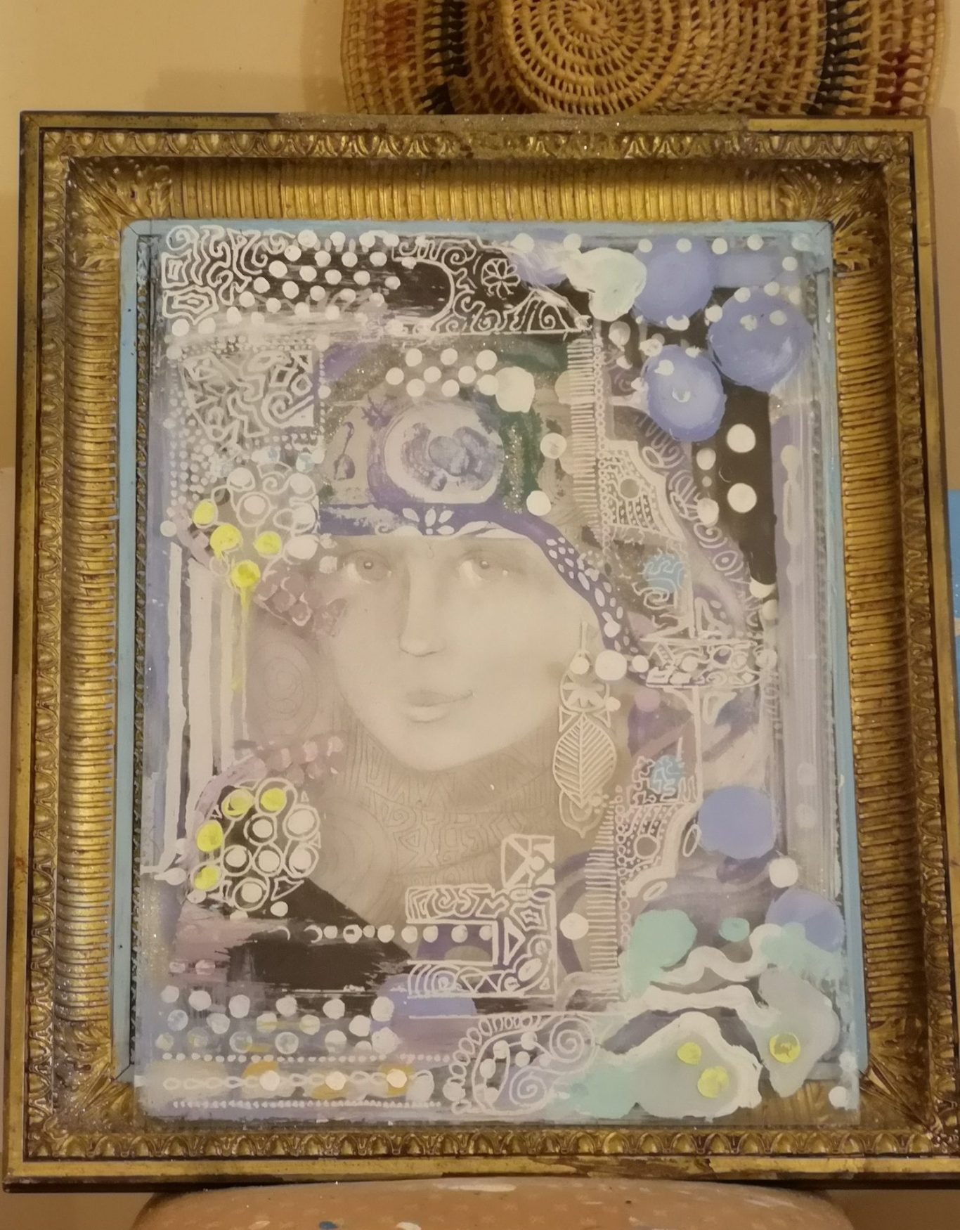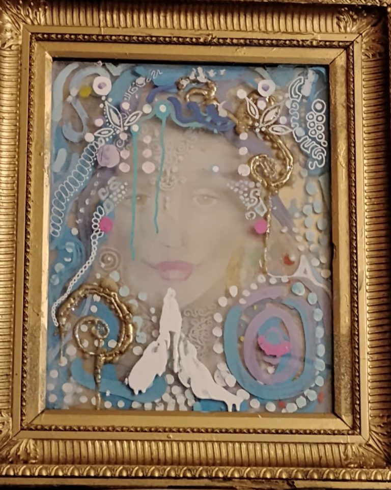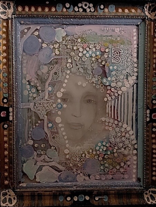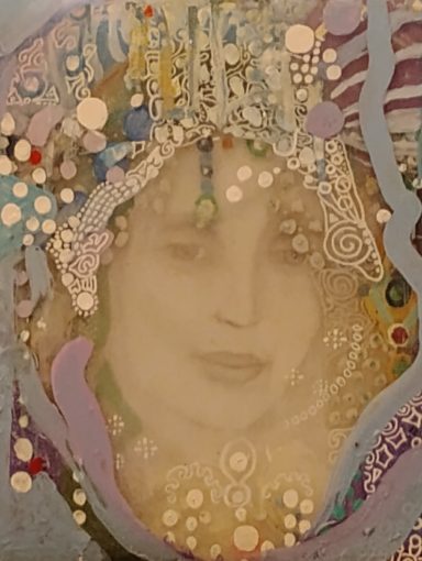 Pamela J. Goldman is a painter very original in the US artistic panorama. She is following a very personal path in multimedia production, mixing drawing, assembled objects and painting. If lightness is the stylistic signature of her assembled glass objects, the Renaissance touch is clearly shown in the smooth and sinuous lines of her magical portraits. Last but not least, her paintings: Goldman seems to have learnt the best lesson of August Klimt with a touch of non-conventional orientalism.
