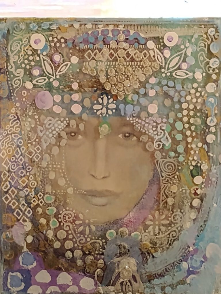 "Pamela J.Goldman art shows us a world of deep refinement and elegance; every detail is treated with extreme care, every color chosen with devotion. Her beautiful women recall the preciousness of oriental headdresses and costumes. From her artworks, painting and sculptures, the love for the refinement typical of the Art Nouveau of the last century shines through."
