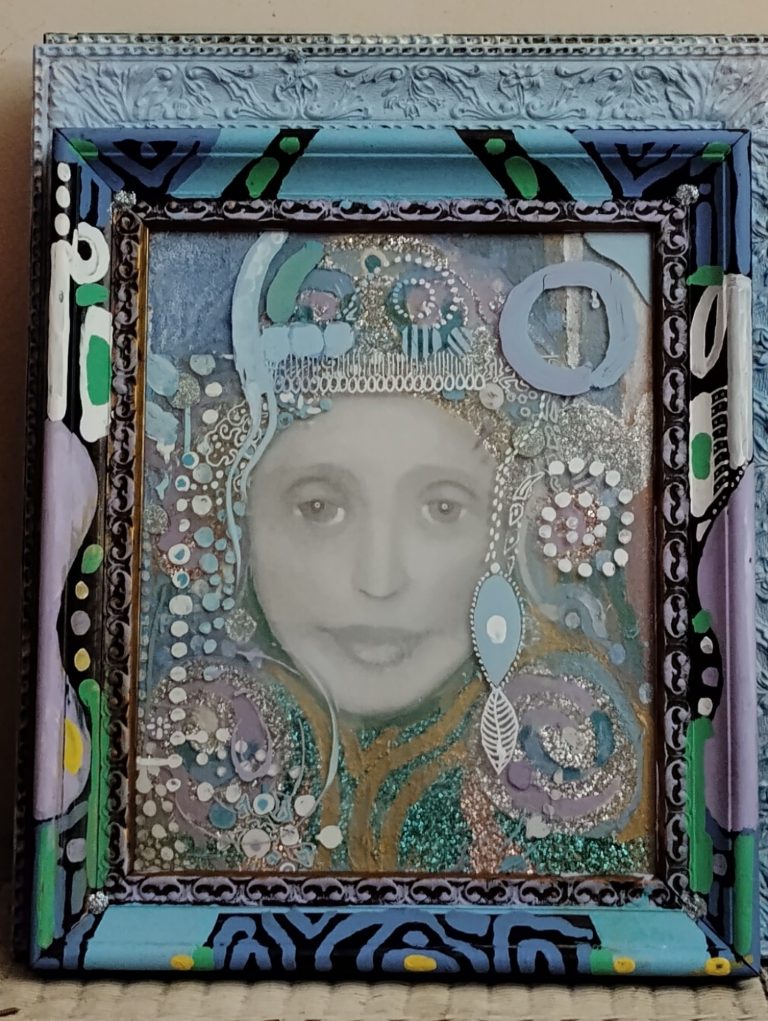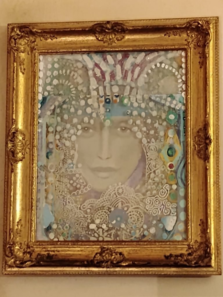 Pamela J. Goldman is a painter very original in the US artistic panorama. She is following a very personal path in multimedia production, mixing drawing, assembled objects and painting. If lightness is the stylistic signature of her assembled glass objects, the Renaissance touch is clearly shown in the smooth and sinuous lines of her magical portraits. Last but not least, her paintings: Goldman seems to have learnt the best lesson of August Klimt with a touch of non-conventional orientalism.